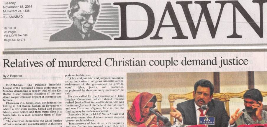 Sajid Ishaq in Kot Radha Kishan Incident, Press Releases 18 November 2014
